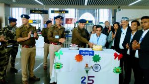 अयोध्या3 फरवरी अयोध्या एयरपोर्ट पर आज केंद्रीय औद्योगिक सुरक्षा बल (CISF) के 25वें स्थापना दिवस के उपलक्ष्य में भव्य समारोह का आयोजन किया गया। इस अवसर पर सीआईएसएफ के जवानों ने केक काटकर अपनी गौरवशाली सेवा यात्रा का जश्न मनाया।