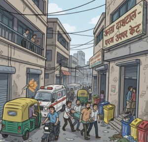 नियमों की बात करें तो राष्ट्रीय भवन संहिता और स्वास्थ्य विभाग के मानक स्पष्ट रूप से यह आदेश देते हैं कि किसी भी अस्पताल के सामने की सड़क कम से कम तीस से चालीस फीट चौड़ी होनी चाहिए। लेकिन जमीनी हकीकत इसके उलट है; यहाँ महज दस से पंद्रह फीट की तंग गलियों में बड़े-बड़े बोर्ड लगाकर बहु-विशेषज्ञ अस्पताल खोल दिए गए हैं। इन आवासीय ढांचों में न तो रोगी वाहन के मुड़ने की जगह है और न ही अग्निशमन यानी आग से बचाव के पुख्ता इंतजाम। बिना भूमि उपयोग परिवर्तन’ कराए और बिना व्यावसायिक नक्शा पास कराए इन घरों में गहन चिकित्सा इकाई और ऑपरेशन कक्ष संचालित करना किसी ‘मौत के जाल’ से कम नहीं है। स्थानीय जनता अब यह सवाल पूछ रही है कि आखिर किसकी शह पर ये अवैध अस्पताल आवासीय भूखंडों पर व्यावसायिक रोटियां सेंक रहे हैं।
